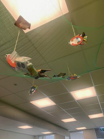 Misschien is uw oog tijdens de inloopavond ook gevallen op het mooie kunstwerk in de benedengang (bij binnenkomst). Een hele mooie creatieve verwerking van een aantal VSO leerlingen.